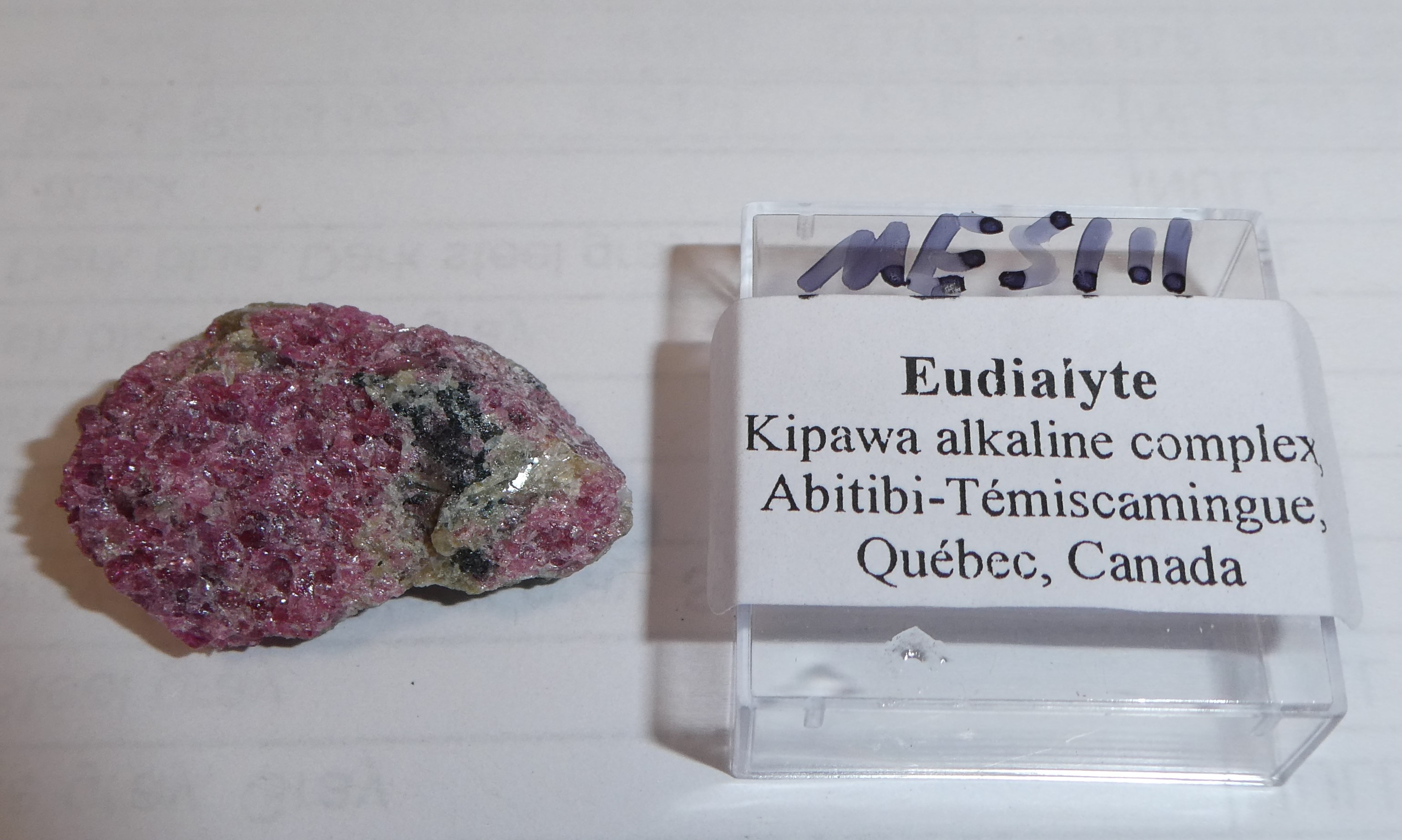 | MES111 Eudialyte | NVCL, AuScope Limited | Eudialyte (100.0%) | 100.0 | 1 | Reflectance | |