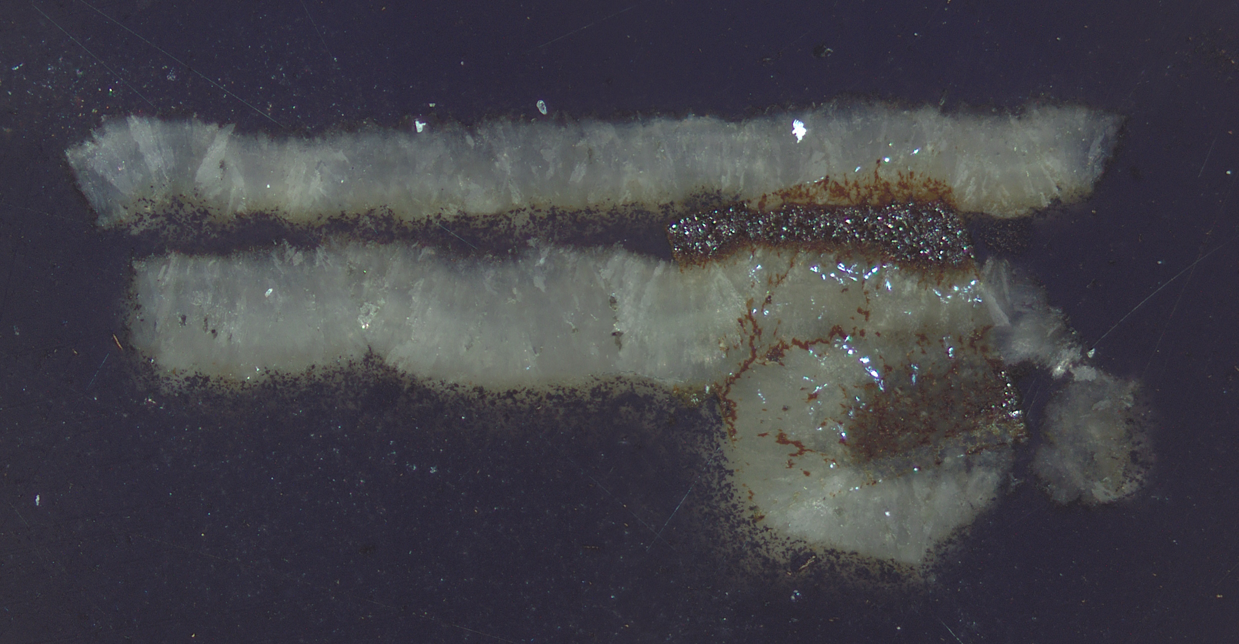 Optical micrograph of Evansite [Al3(PO4)(OH)6·8H2O] in 'P-0430 Evansite' standard (CSIRO) from Richelle, Visé, Liège, Wallonia, Belgium. Instrument: Olympus BX-51. Date: November 2024.
