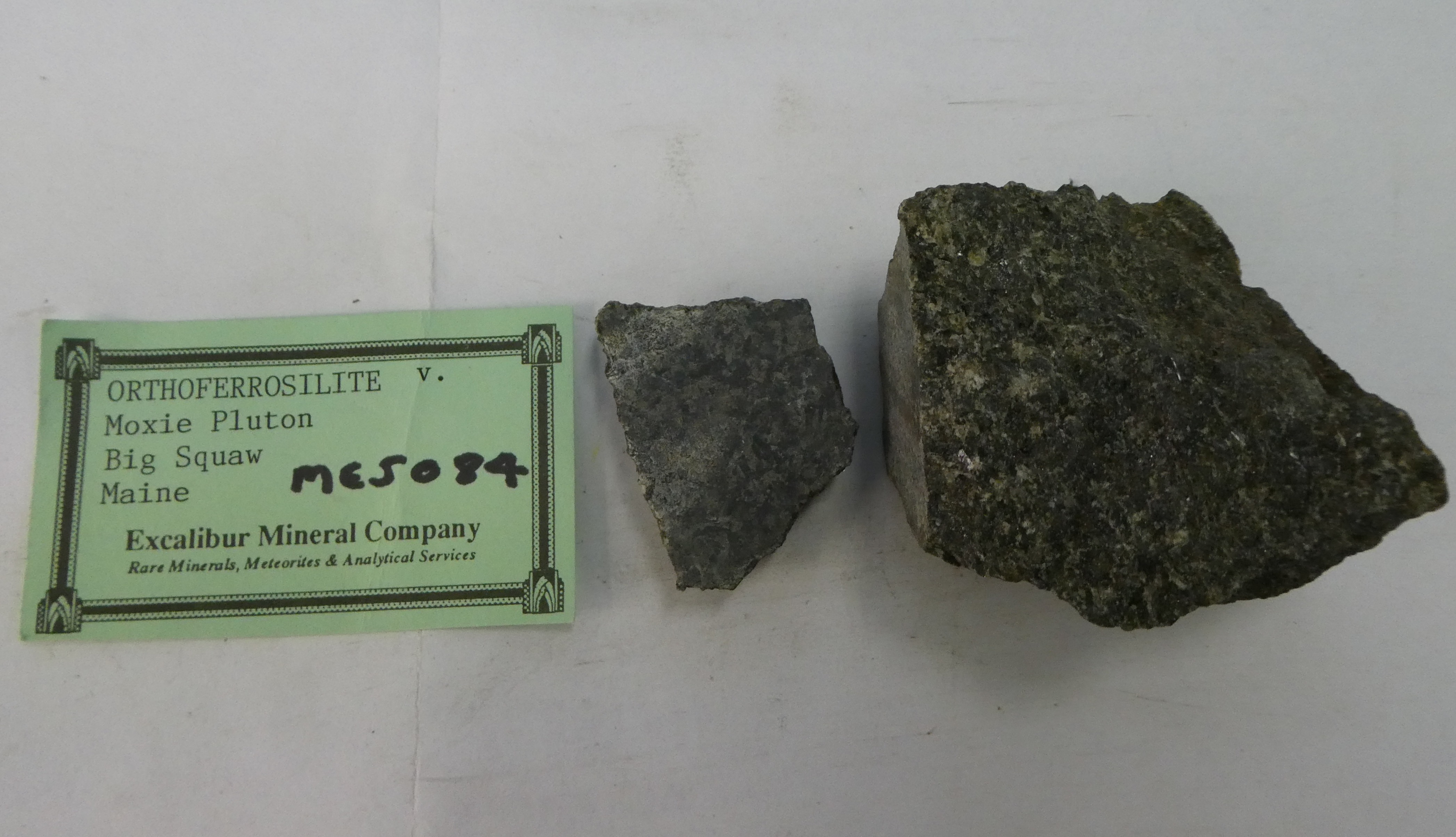 Image of Labradorite, Enstatite (var. Fe), Fayalite (var. Mg), Ilmenite, Phlogopite (var. Fe) and Quartz in specimen 'MES084 Labradorite / Fayalite / Enstatite' [CSIRO].