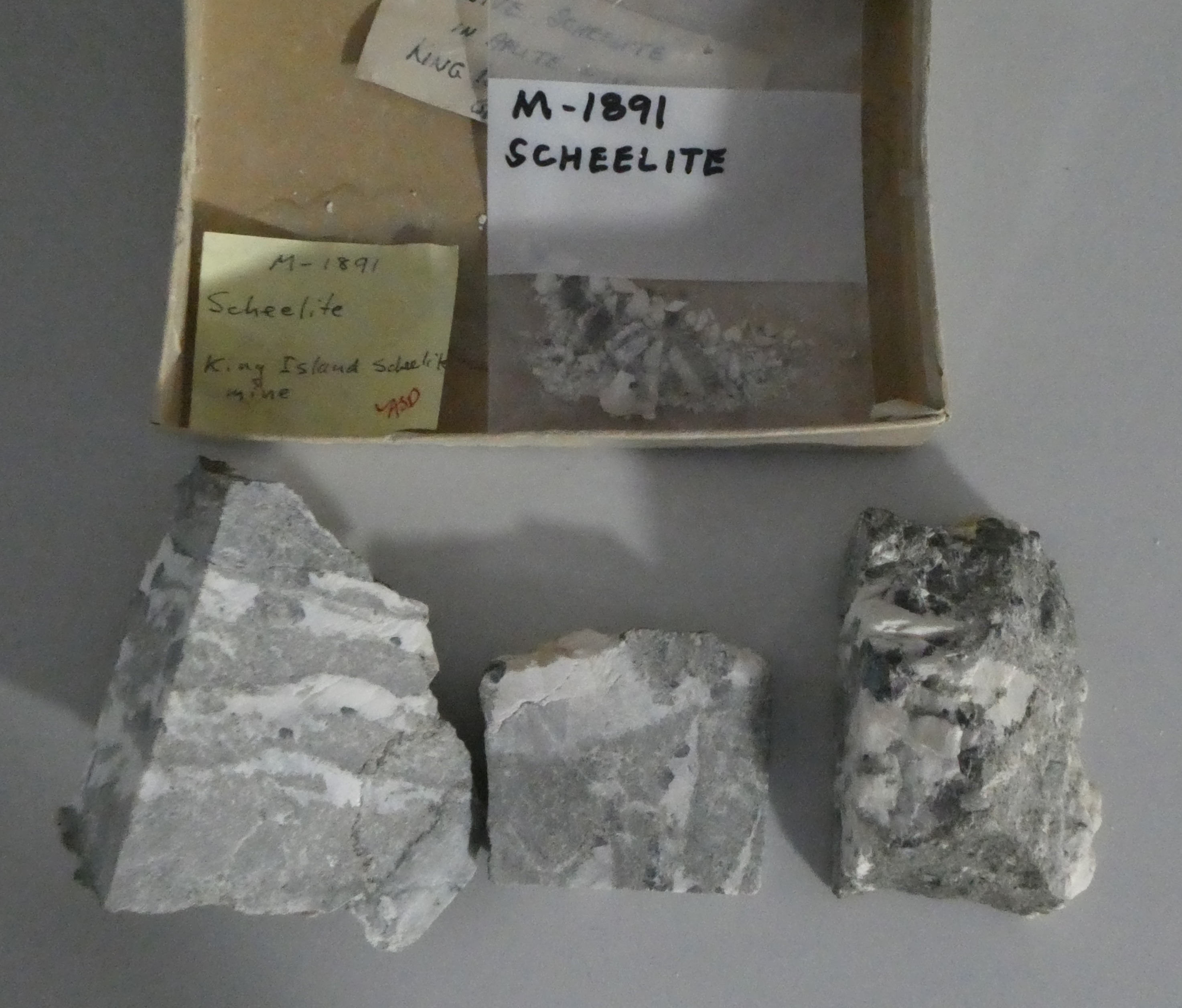 Image of Quartz, Calcite and Scheelite in specimen 'M1891 Quartz / Scheelite / Calcite' [CSIRO].