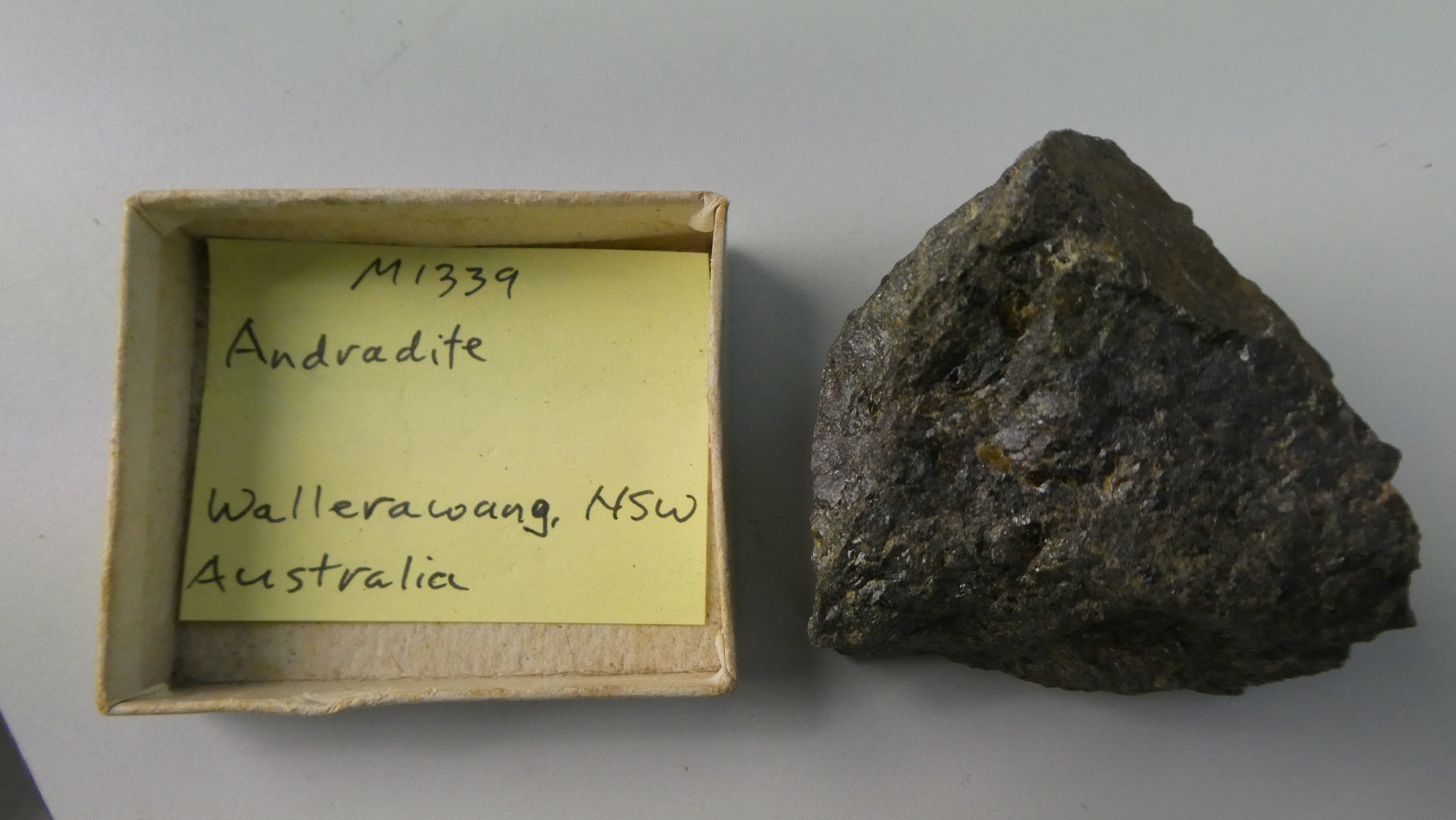 Image of Andradite + 3 other materials in specimen 'M1339 Andradite' (CSIRO) from Wallerawang, City of Lithgow, Central West Region, NSW, Australia