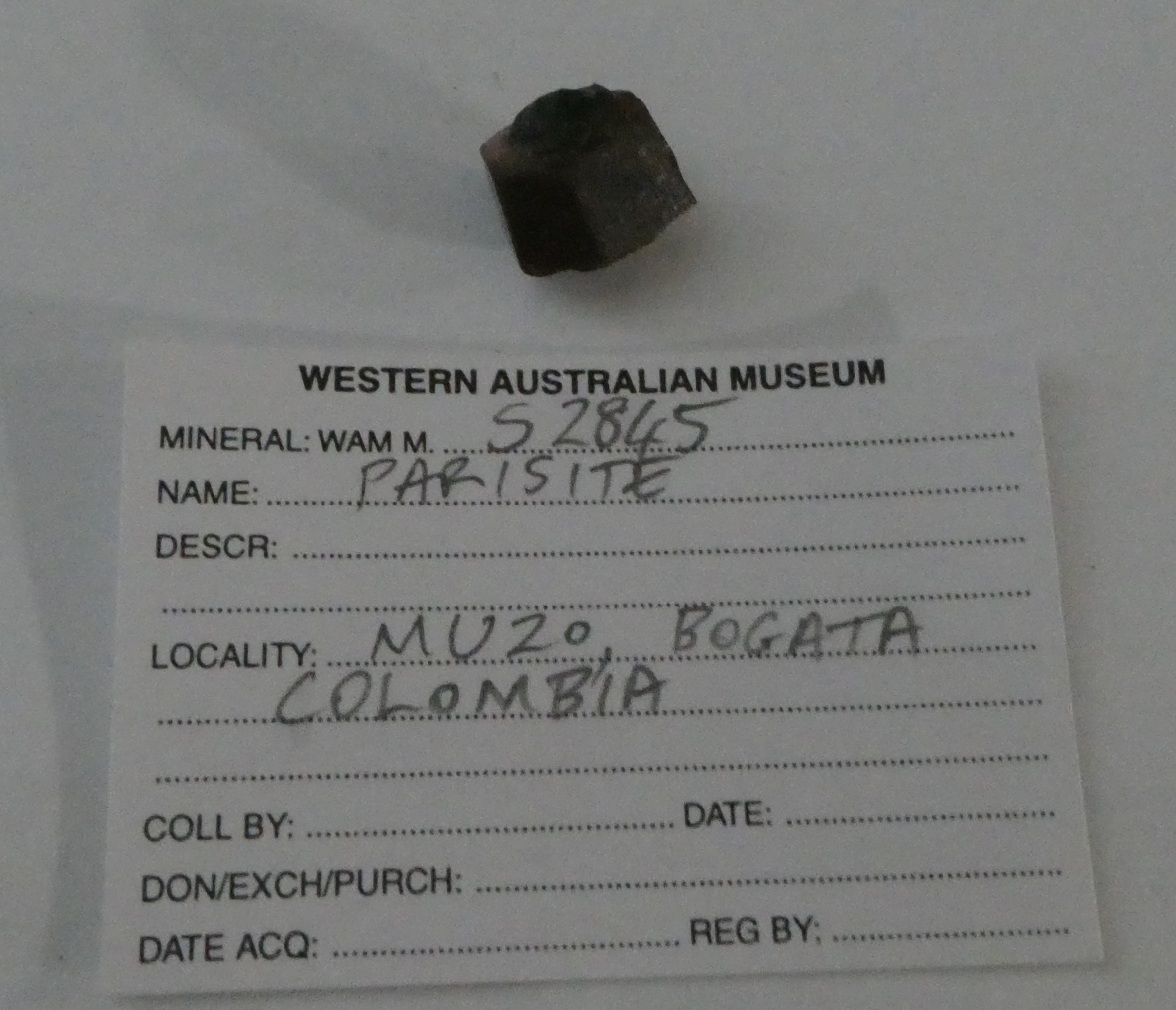 | Material(s) | Parisite [Ca(Ce,La)2(CO3)3F2] |